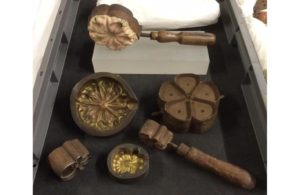 Dressmakers and milliners were using artificial flowers extensively and with the invention of cutting irons from Switzerland, artificial flower making truly took off. These cutting irons would cut 8-12 layers of material to a petal or leaf shape with a single whack of a mallet, thus reducing the need to cut them one by one. This stamping out of flower and leaf shapes became a man’s job, alongside the material dying. Women and children were then left to assemble the pieces together into the final product. This simple form of mechanisation provided the volume required to meet demand.